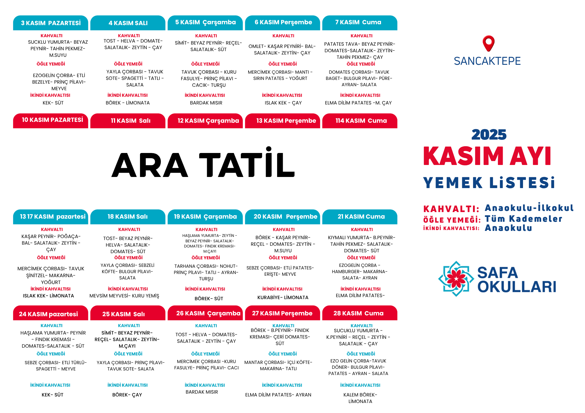 SANCAKTEPE / KASIM AYI YEMEK MENÜSÜ